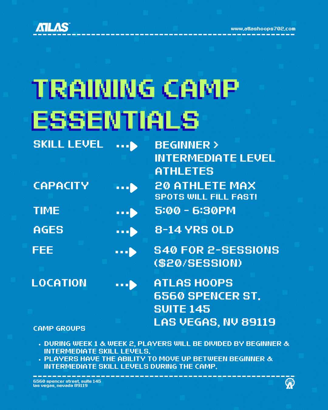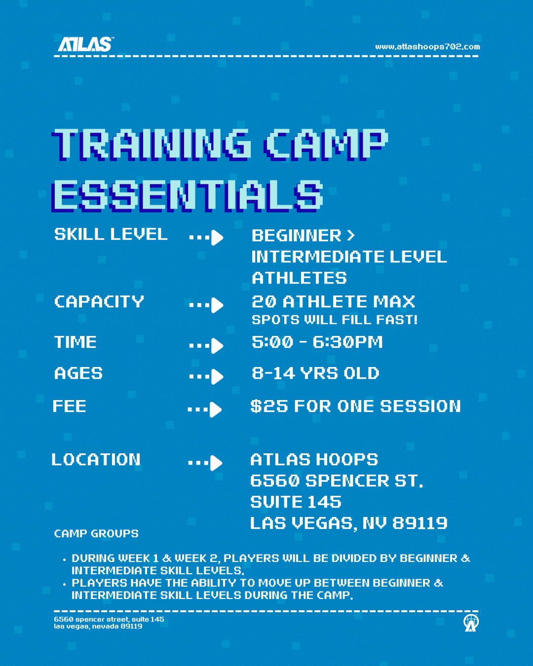 atlas camps address various fundamental skills and topics that are important for the beginner to intermediate level basketball student-athlete to excel in basketball.