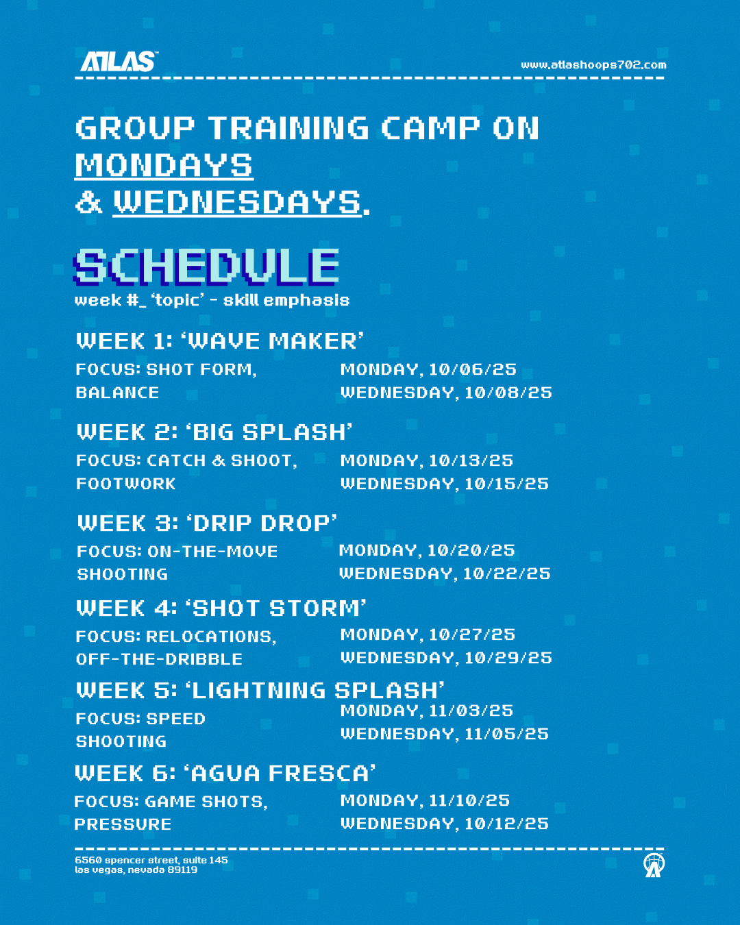 ATLAS Hoops training programs aim to improve athletic performance, fundamentals, and basketball IQ.